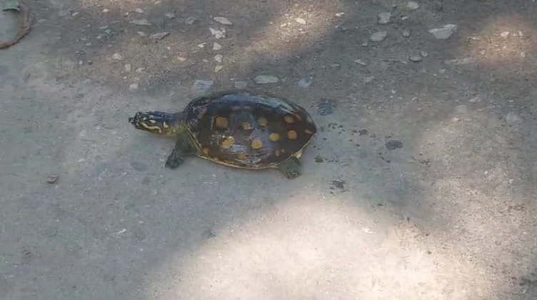 Reportedly, the turtle was spotted by the local drivers in the area adjacent to Fulbari barrage on Friday night. The turtle was subsequently recovered by a resident who brought it to his home.