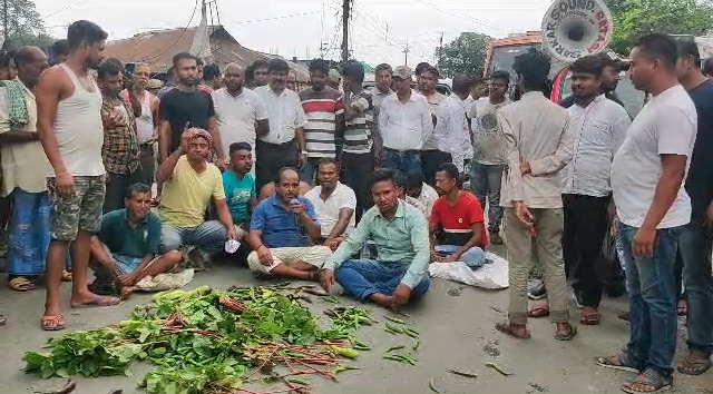 Kharibari, 24th June: Angry traders and farmers staged a protest by blocking the national highway to express their dissatisfaction over the removal of the historic wholesale market from Batasi in Kharibari. The move comes due to a lack of space for wholesale markets. Today, enraged farmers threw vegetables onto National Highway-327, causing a roadblock in protest. Consequently, traffic congestion ensued.