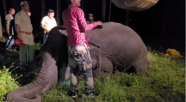 Madarihat, 27th May: In a heartbreaking incident, a female elephant was electrocuted amidst heavy rainfall in the Khairbari region. The unfortunate event unfolded on Friday night when the elephant ventured into a betel nut plantation, where a high-tension electric wire was installed.