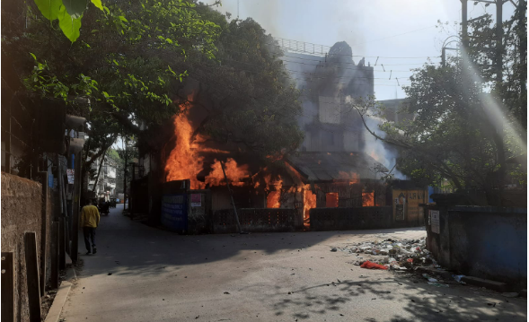 Siliguri, 29th March: Sensation prevailed after a fierce fire engulfed the abandoned quarters of the Public Works Department adjacent to Mahatma Gandhi More under Ward No. 10 of Siliguri.