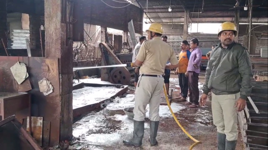 Fulbari, 24th February: A fire broke out at a grill factory in the Paschim Dhantala area of Fulbari II Gram Panchayat (GP) on Monday morning.