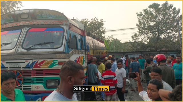 Siliguri, 04th December: Panic gripped the area near the IOC gate in Siliguri on Thursday after an oil tanker standing on the roadside caught fire. Swift action by IOC personnel prevented the situation from turning into a major mishap.
