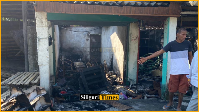 Siliguri, 17th November: A massive fire broke out today in the Matigara Panchakulguri area, triggering panic in the locality. The sudden blaze completely gutted three shops, while another shop was partially damaged.