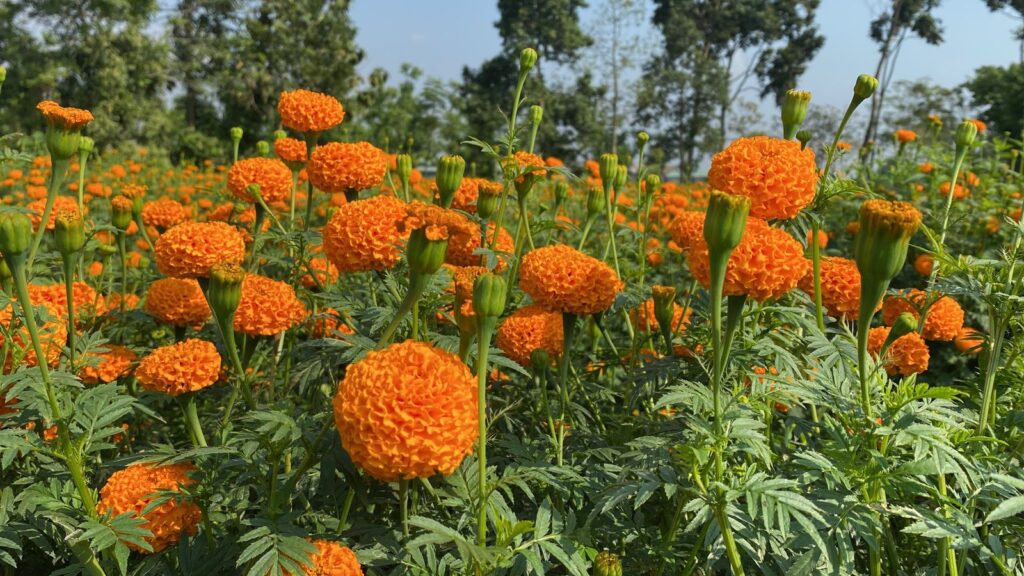 The Phansidewa block of Siliguri is an agriculture-dependent area, where locals are involved in farming throughout the year. Many farmers in the region, like Buddhadeb, grow marigolds across several acres of land. This year, Buddhadeb has cultivated marigolds on almost 6 bighas of land.