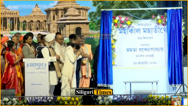 Siliguri, 16th January: West Bengal Chief Minister Mamata Banerjee laid the foundation stone of the Mahakal Mahatirtha in Siliguri on Friday evening. Following the ceremony, the temple land was handed over to the managing trust. The Chief Minister said the Mahakal Temple is expected to be completed within two to two and a half years.
