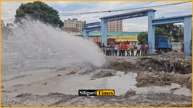 Siliguri, 29th July: Water supply in Champasari and surrounding areas was disrupted on Tuesday morning after a pipeline burst near the Regulated Market area due to ongoing four-lane construction work.