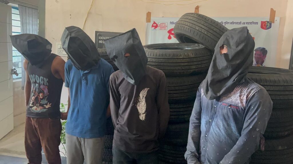 Siliguri, 23rd September: In a recent incident, four individuals have been arrested in Siliguri on charges of tyre theft. The suspects, identified as Pankaj Talukdar (24), Amirul Islam (30), Rahul Sikdar (28), and Abdul Nazirul (33), were apprehended by police officers of the Bhakti Nagar Police Station.