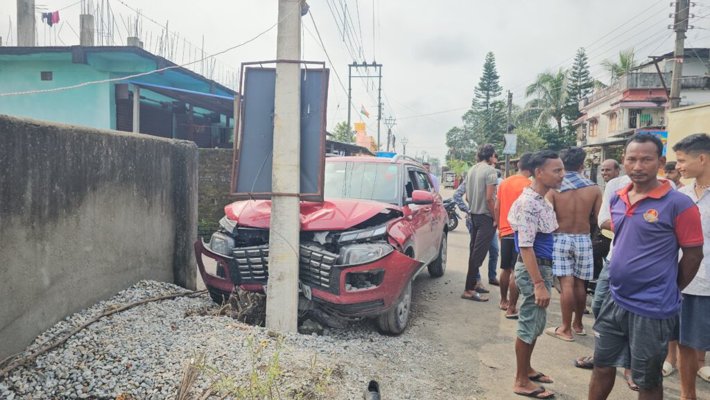 Fulbari, 09th October: A vehicle lost control and crashed into an electric pole in the Sipai Para area of Fulbari-II Gram Panchayat on Wednesday morning. Fortunately, people standing nearby managed to escape without injury.