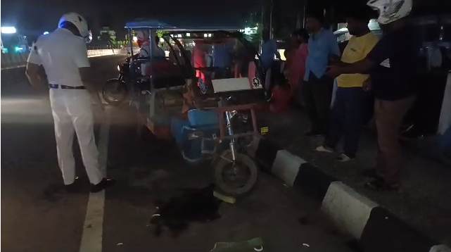 Fulbari, 18th May: A four-wheeler vehicle rammed into an e-rickshaw (toto) on Wednesday night near Uttar Kanya overbridge, adjacent to Siliguri city. However, after the accident, the vehicle sped from the scene.