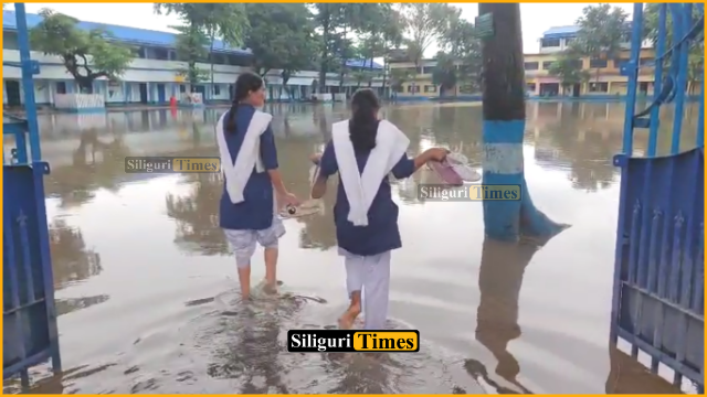 Fulbari, 29th August: Continuous rain since Thursday night left Fulbari High School waterlogged, creating major inconvenience for students and teachers on Friday.