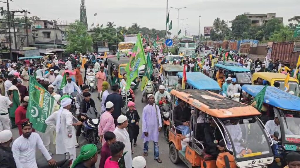 Fulbari, 16th September: A grand procession was organized in Fulbari to celebrate Eid-e-Milad ul-Nabi. On Monday, the significant occasion has been observed in various locations, including in Fulbari.