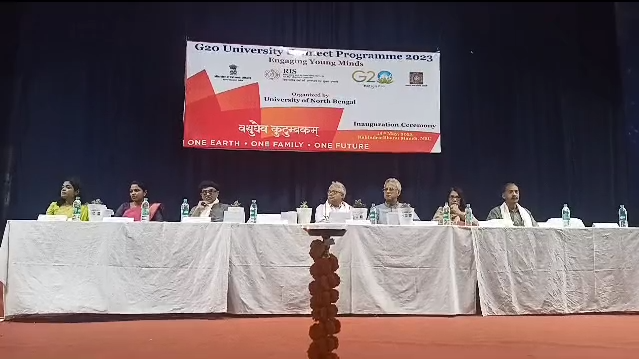 Siliguri, 18th May: The North Bengal University (NBU) organized the G20 University Connect program in Siliguri today. The program, under the banner of the G20 Summit, held at the Rabindra Bhanu Manch of the University, saw the presence of NBU Vice Chancellor, Om Prakash Mishra, along with other dignitaries.