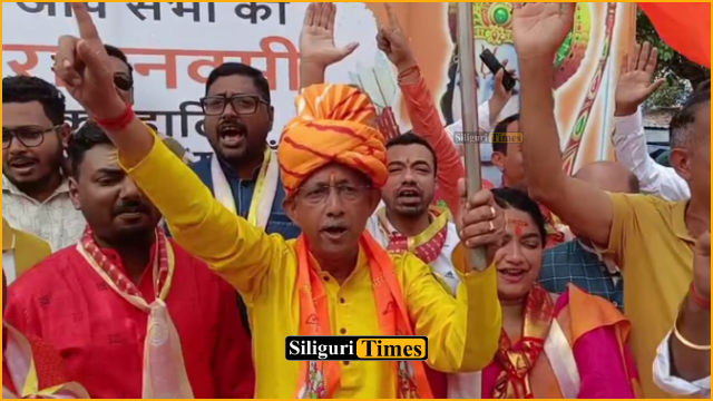 Siliguri, 27th March: A unique message of goodwill and unity emerged in Siliguri during the Ram Navami shobha yatra. Trinamool Congress candidate and Siliguri Mayor Gautam Deb joined the procession and went near the BJP stage to extend greetings to everyone.