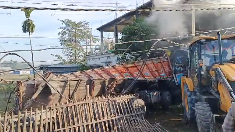 According to reports, on Wednesday morning, the truck was on its way to the Mathabhanga College when a passenger bus was heading towards the opposite direction. In an attempt to evade collision, the truck driver took a sharp turn when it collided with an electric pole on the side of the road and consequently crashed into the house.