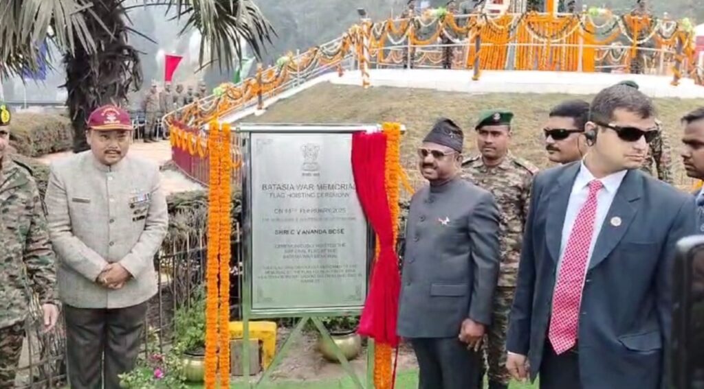Darjeeling, 14th February: West Bengal Governor C.V. Ananda Bose graced the Flag Hoisting Ceremony and Inauguration of the Flagmast at Batasia War Memorial in Darjeeling, paying a grand tribute to the bravery and sacrifices of Indian soldiers, especially the revered Gorkha soldiers.