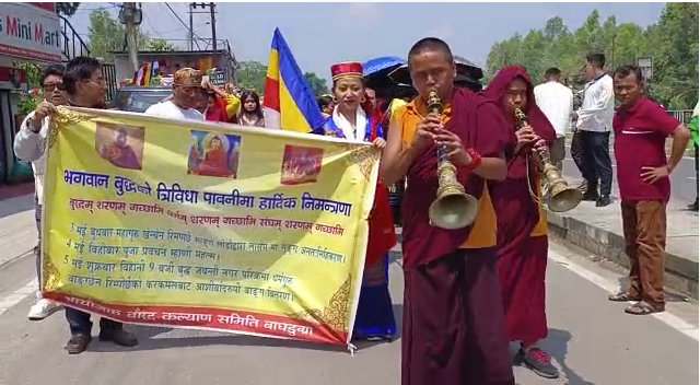 Siliguri, 05th May: On the occasion of Buddha Purnima, a peaceful and vibrant procession was taken out at Bagdogra today. The parade started from the Buddhist Monastery located at Dara Gaon and circumambulated different areas of Bagdogra, passing by the Buddhist Monastery near Panighata More.