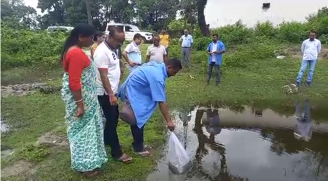 Phansidewa, 08th August: The Phansidewa block administration released a large number of guppy fishes in numerous canals and reservoirs of the block to eliminate the dengue-carrying mosquitoes and curb the spread of dengue. The event witnessed the presence of Phansidewa Block Development Officer (BDO) Sanju Guha Majumdar, Panchayat Samiti President Reena Ekka, Block Health Officer Arunabh Das, and other administrative officials.