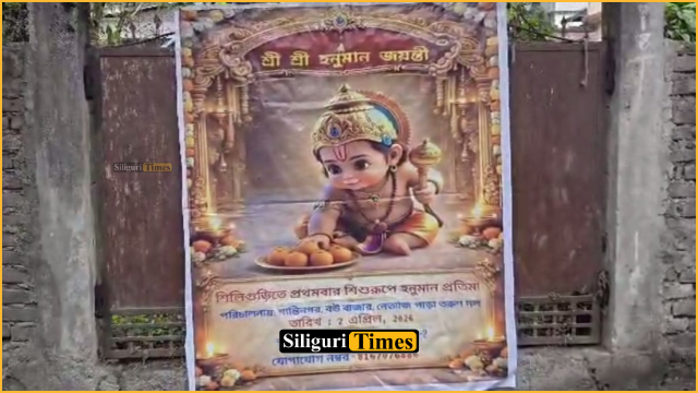 Siliguri, 21st March: Special arrangements are being made this year for Hanuman Jayanti to attract city residents. At Netaji Para Tarun Dal’s puja in the Uttar Shanti Nagar’s Boubazar area of Siliguri, a depiction of Hanuman in child form will be showcased.