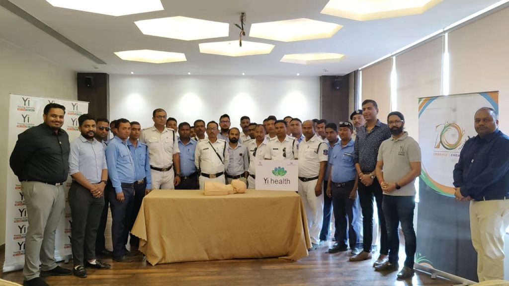 During this, the police personnel was trained on guide to first aid as well as how to perform CPR on the injured during road accidents. Details on the process and number of times to give CPR were closely given to the police. Health training camp organized by Young Indians organization for traffic policemen and civic volunteers.