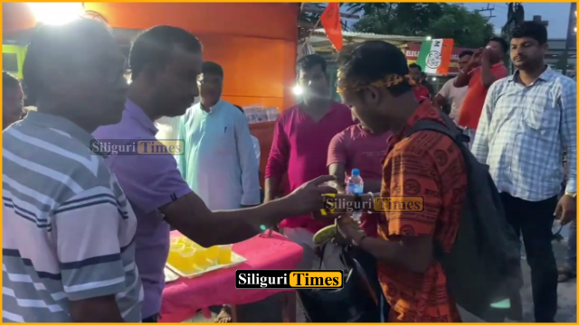 Rajganj, 04th August: In a heartwarming display of communal harmony, residents of Bandhunagar in Rajganj came together on Sunday to offer water, cold drinks, and fruits to pilgrims heading towards the Jalpesh temple in Maynaguri.