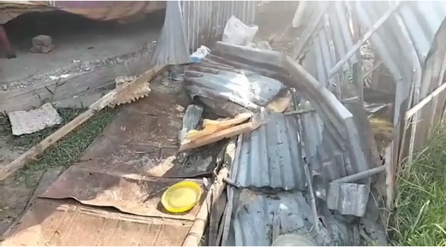 Naxalbari, 10th May: A wild elephant wreaks havoc, damaging a house in Chhoto Maniram Jote, located in the Maniram Gram Panchayat of Naxalbari. Miraculously, the family members inside the house managed to escape unharmed.