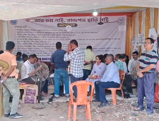 Siliguri, 08th October: The hunger strike and protest by junior doctors at North Bengal Medical College and Hospital (NBMCH) is ongoing, as they continue to push for their 10-point demands.