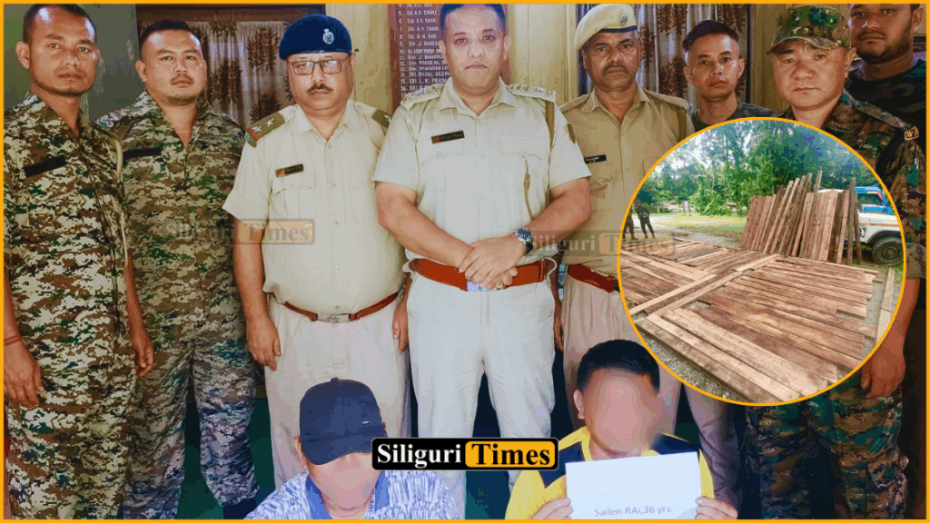 Reportedly, a large quantity of illegal teak and sal timber was recovered from the vehicle. Two individuals, identified as Bishal Rai (41) and Sailen Rai (36), were arrested on the spot. The vehicle used in the offence was also seized.
