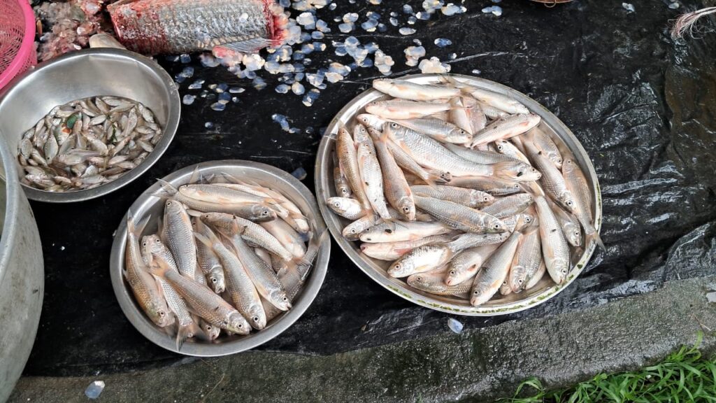 Fulbari, 22nd June: Continuous rainfall over the past several days has led to a rise in water levels in the Mahananda Barrage, significantly increasing the availability of various river fish.