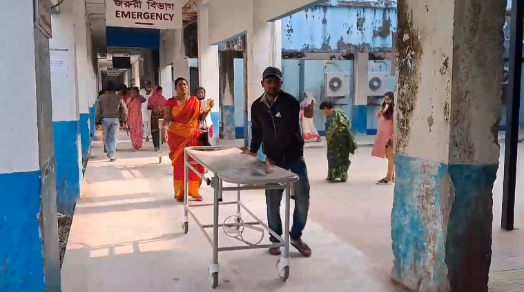 Sanjay Mallick, Superintendent of NBMCH, explained that the high number of outdoor patients has overwhelmed the available trolleys and wheelchairs. He acknowledged the shortage of Group D staff in various wards and noted that due to the large volume of patients, relatives are being forced to pull the trolleys themselves.