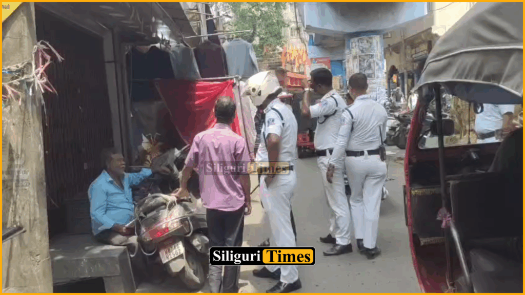 Siliguri, 25th April: The Jalpai More Traffic Guard has once again initiated a campaign against encroachment, successfully clearing the stretch from Siliguri Thana More to Mahabirsthan. As part of the operation, goods kept on roadside footpaths were removed, and illegally parked vehicles were also towed away.