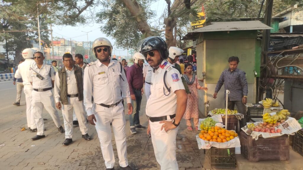 Siliguri, 09th February: The Jalpai More Traffic Guard has launched an anti-encroachment drive on Burdwan Road in Siliguri, successfully clearing the footpath of encroachments. As part of this campaign, items blocking the footpaths were removed, and vehicles that were illegally parked were also towed away.