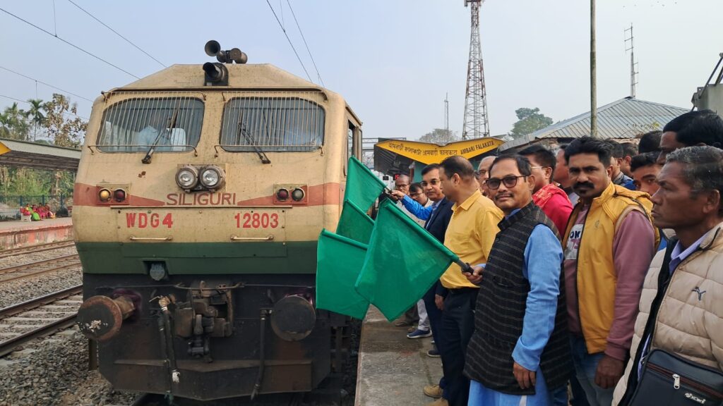 Rajganj, 22nd February: On Thursday, Jalpaiguri MP Jayanta Kumar Roy officially inaugurated new train stoppages at Ambari-Falakata and Belakoba Railway Stations. It is to be noted that the New Jalpaiguri-Bongaigaon Express train will have new stoppages at the said stations.