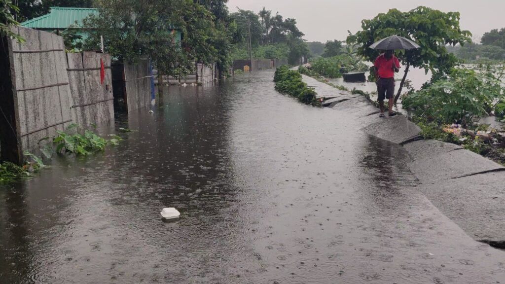 Siliguri, 14th July: Following continued rainfall over the night, the Jorapani River is in spate. The increase in water levels has resulted in water entering residential areas. Notably, during the dry season, the said river takes the form of a mere drain.