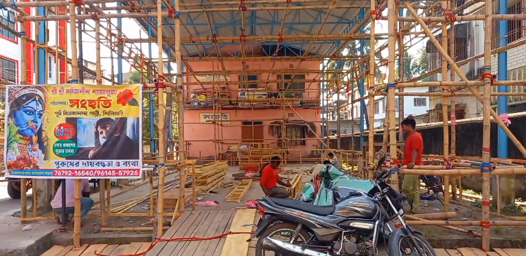 Siliguri, 08th November: On the 53rd year of Kali Puja celebrations, the Siliguri Sanghati Club of Purba Vivekananda Pally is preparing a puja pandal that will illustrate the conceptual theme of “Purusher Dayebodyota o Baitha” (Men’s responsibilities and pain).