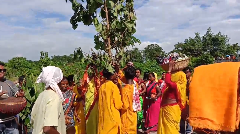 Alipurduar, 15th September: The Karam Visarjan, marking the conclusion of the Karam Puja, was held on Sunday across different riverbeds in the Alipurduar district. The festivities began on Saturday evening with the traditional Karam Puja, which continued through the night.