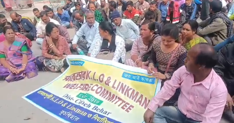 Cooch Behar, 23rd February: The members of KLO and Linkman Welfare Committee have staged a sit-in protest in front of the Cooch Behar District Magistrate’s (DM) office demanding immediate recruitment of Special Home Guard.