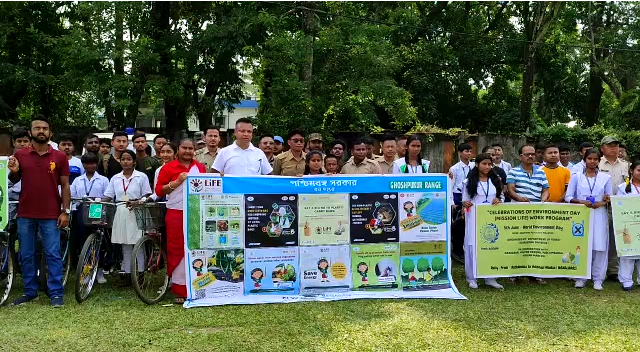 Bagdogra, 5th June: On the occasion of World Environment Day, the Kurseong Forest Department, on Monday, organized a cycle rally and cleanliness drive to spread awareness on environmental protection.