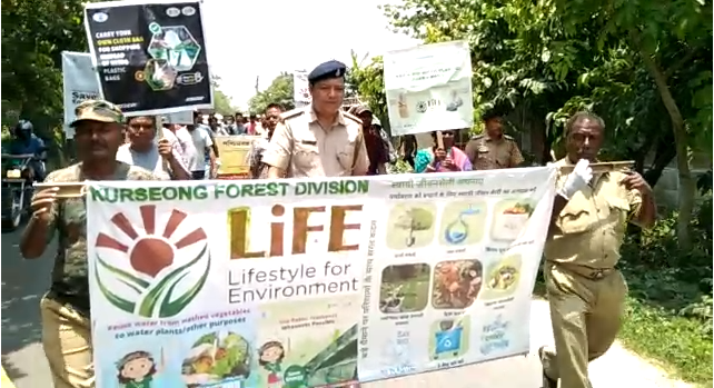 Siliguri, 02nd June: Ahead of World Environment Day, the Kurseong Forest Division and Ghoshpukur Forest Department organized an awareness program aimed at promoting environmental consciousness. On Friday, the Ghoshpukur Forest Department of the Kurseong Division led an awareness rally, accompanied by a cleanliness drive. The program saw the participation of various welfare organizations, including Ghoshpukur Gram Panchayat, Traffic Police, Ghoshpukur Police, and Paschim Banga Vigyan Mancha.