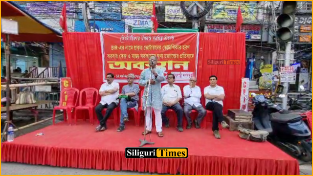 Siliguri, 06th February: The Left Front organized a sit-in protest at Hasmi Chowk in Siliguri against the SIR process. The protest was attended by Left leaders including Ashok Bhattacharya, Saman Pathak, along with party workers and supporters.