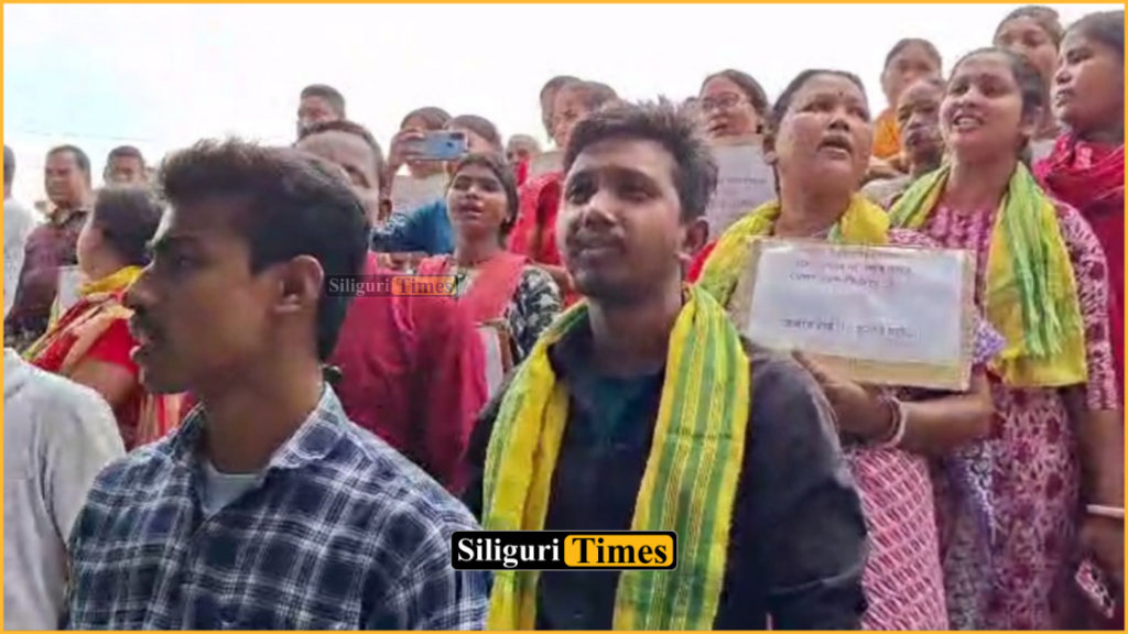 Siliguri, 22nd March: Tension prevailed in Siliguri’s Ward No. 42 near Eastern Bypass following allegations that a liquor shop was operating under the guise of a departmental store. Members of Siliguri Rajbanshi Kshatriya Welfare Society staged a protest, demanding immediate closure of the establishment.