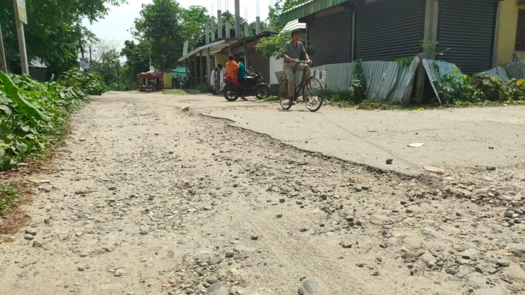 Rajganj, 11th May: The condition of the road in the Ambari area has deteriorated significantly over an extended period of time. Local residents have been demanding immediate repairs to the road. It has been reported that the road stretching from Ambari Karatoya Bridge of Binnaguri Gram Panchayat in Rajganj block to the Post Office Road via High School has been in a dilapidated state for about five years.