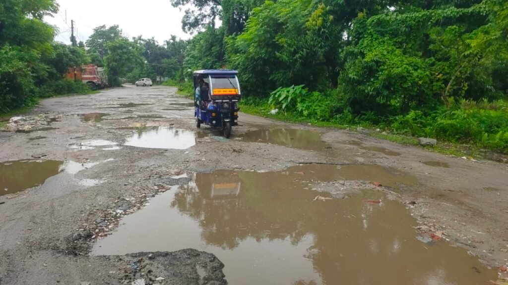 Fulbari, 04th August: The Mahananda Barrage Road in Fulbari has been in a dilapidated condition for a long time, with potholes making the situation worse. Local residents have been demanding the road’s repair, as it covers about 1.5 kilometers from Rajiv More to Fulbari Barrage under the Fulbari-II Gram Panchayat. The poor road condition has led to daily minor accidents, prompting urgent repairs.