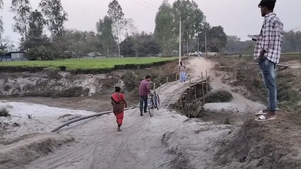 Rajganj, 13th March: The locals of Chaturagach village near the Indo-Bangladesh border of Sannyasikata Gram Panchayat (GP) of Rajganj block are considering to boycott the Lok Sabha elections. The move comes due to the alleged unavailability of a bridge to cross the river compelling the locals to commute via a makeshift bamboo bridge for several years.