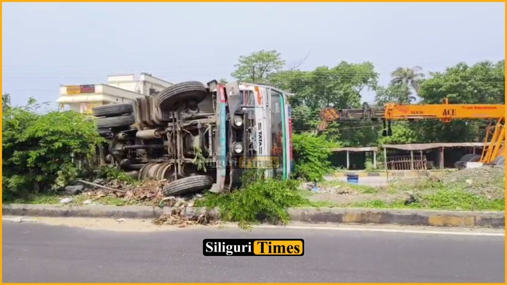 According to reports, the incident occurred on National Highway 31, where repair work has been ongoing for several days. The lorry, reportedly unable to detect the barricades due to unclear visibility or signage, rammed into a divider and lost control, resulting in the vehicle overturning.