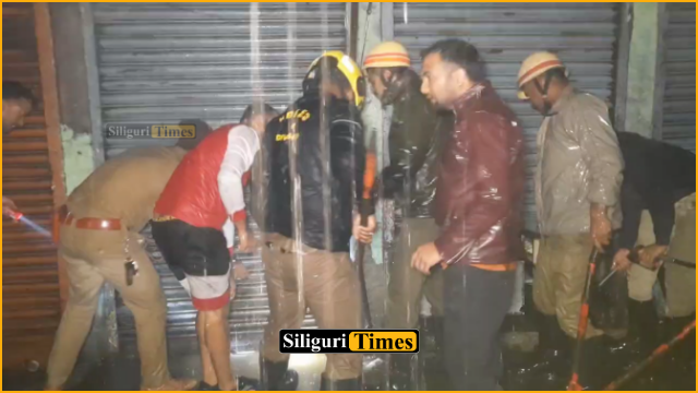 Siliguri, 12th February: A massive fire broke out in Nivedita Market late Wednesday night, destroying several shops. Around 2:30 AM, a security guard spotted flames in one of the shops and immediately alerted the fire department and shop owners. Due to the congested area, the fire spread quickly, engulfing multiple shops.