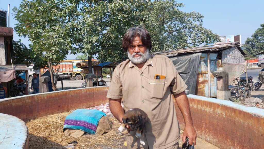 Fulbari, 26th November: In the midst of an ongoing uproar in Siliguri over the poisoning of stray dogs, Fulbari provided a glimpse of pure humanity. Sunil Kapri, a professional truck driver from Gujarat, is looking after nine stray puppies after their mother perished in a road accident. The news surfaced from the area adjacent to the Fulbari bypass truck terminal.