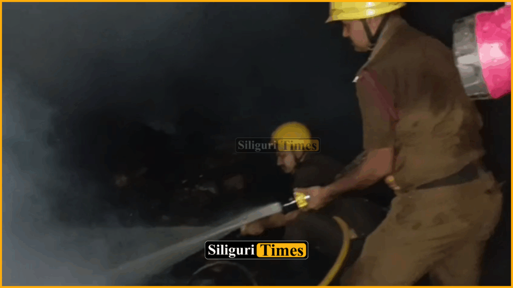 Siliguri,03rd May: A major fire broke out on Friday night in a closed warehouse located under Ward No. 6 of the Siliguri Municipal Corporation, sparking panic among nearby residents. The intensity of the blaze caused significant alarm in the area.