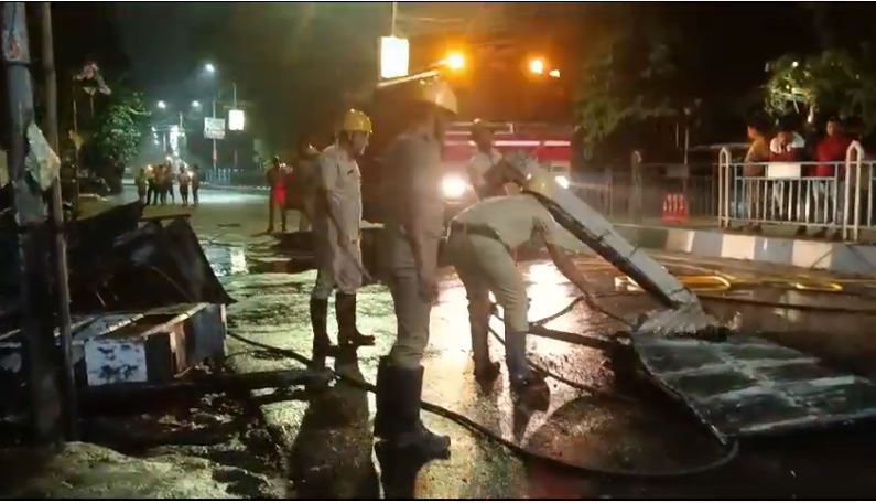 According to local sources, the blaze began around 2 a.m. following a loud explosion, with flames seen rising from one of the shops. Residents believe the fire started at a biryani shop after a gas cylinder explosion.