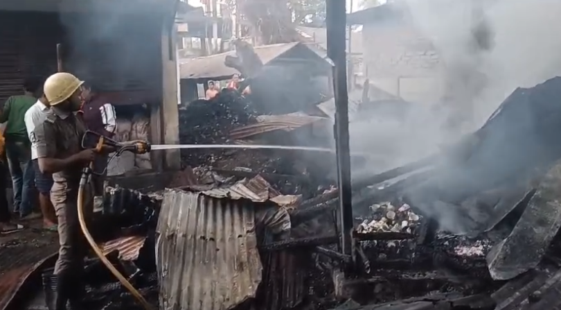 Alipurduar, 22nd November: A devastating fire broke out early in the morning in the Hatkhola area of Hamiltonganj, Kalchini block that destroyed two shops. The fire occurred around 5 AM on Friday, engulfing the stores of local businessmen Swapan Das and Shantanu Das.