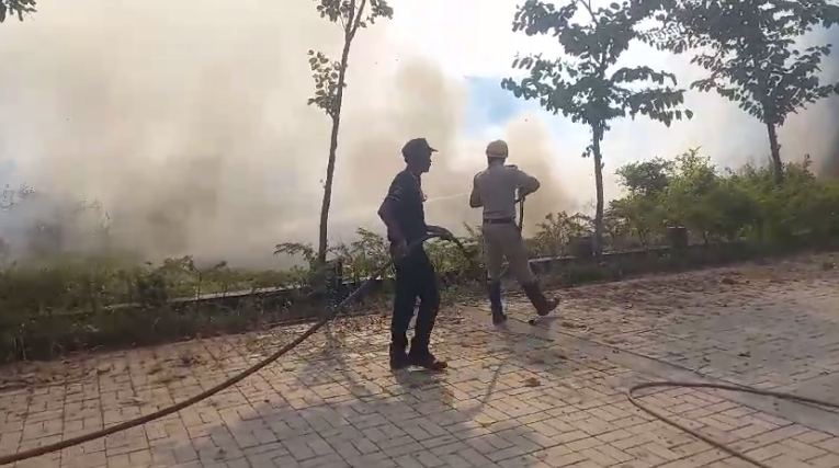 Siliguri, 29th November: A massive fire broke out inside the Kawakhali Utsodhaara Township in Siliguri, causing chaos as workers on duty attempted to extinguish the flames. However, their efforts were hindered as the fire continued to intensify.
